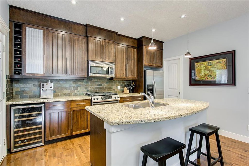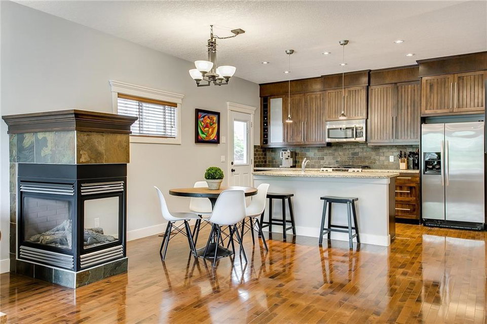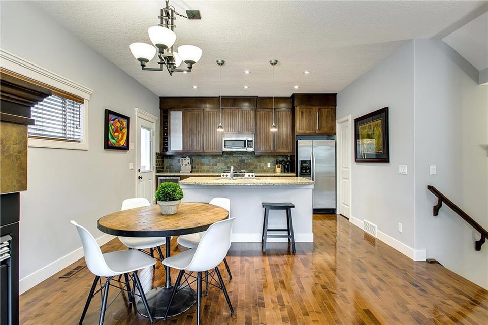 **NOTE NEW PRICING !!Contemporary inner-city townhouse w/finished basement & garage situated in the community of Killarney. The stylish open floor plan w/ soaring 9’ ceilings, gleaming hardwood floors is flooded w/ natural light. 3-sided fireplace provides a relaxing atmosphere in the living room & a casual elegance to the dining room. Entertain with ease in the gourmet kitchen w/breakfast bar island, granite countertops, premium s/s appliances including gas range, wine fridge & large pantry. Tech desk w/built-ins is perfectly tucked away. Laundry is conveniently located on the upper level along with a spacious guest suite w/private ensuite & the master retreat w/huge walk-in closet enhanced w/built-ins & relaxing ensuite w/oversized steam shower. Fully finished basement boasts additional gathering space in the rec room, 3rd bedroom & 4th bath. Shingles were replaced in 2018. Easy access to transit, bike paths, Marda Loop & 17th Ave. Close to parks, schools, Killarney pool, golf course +++!